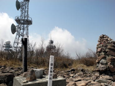 少しヌカヌカ道を過ぎると今回で20回目になる、豪華貸切の黒檜山山頂に到着です。北側展望場所へ向かいましたが、こちらも霞んで視界不良ですので山頂へ速攻で戻り、久し振りに三角点にタッチです。