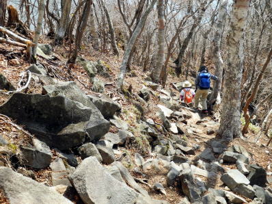 帰路は黒檜山登山口へ直下がりします。前を先程の高崎と桐生市のおね~さんが歩いていました。下りに使うと案外と急なので、先日痛めた右膝の靭帯が痛くなって来てしまいました。