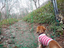 太田市の「おばさんグループ」は、吊り橋を渡り鳥居川の三崖の滝方面から登ってアカヤシオ観賞だそうです。ワンコに沢山エールを頂きました。