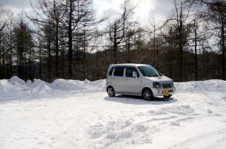 | 登山口から100m程行ったところに、7,8台駐車可能な駐車場があります。車の駐車跡はなく、貸切状態です。小回りの効くセカンドカー(軽の4WD) |