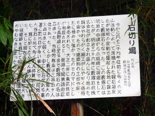 説明を読むと、明治から続いた石切り場の藪塚石の欠点は水に弱く生産性が悪いので、昭和の中頃で終了したみたいです。今でも当時の面影がはっきり残っていて、足場があり天井部に作業メモが残っていたりします。