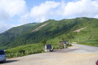 | 山頂向かって、なだらかな登山道が伸びています。途中までは高山植物を観察しながら、のんびり登ります。 |