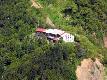 種池山荘手前まで、蓮華岳・針ノ木岳方面を眺めながらの山道です。「石畳」~「水平道」~「包優峠」~「右ベンチ」~「アザミ沢」、さらには「ガラ場」の標識が随所に現れ飽きません。「富士見坂」の急登を過ぎると、種池山荘の正面に到着します。