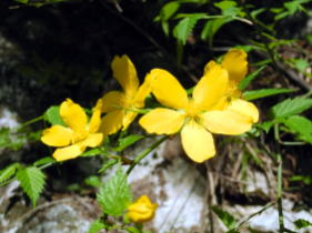 ヤマブキ、ヤマエンゴサク、ツルキンバイ 、イチリンソウ、スミレの群生