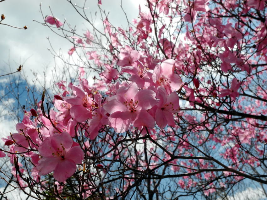 賽の河原付近はアカヤシオの見頃で、小丸山へ方向を上げて行くとつぼみが多くなります。