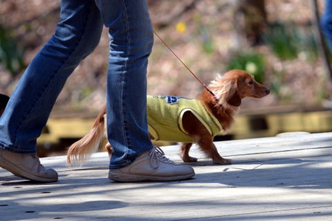 時々お友達のワンちゃんと会って興奮気味のnanaco! 水芭蕉が開花して賑やかな領域になっています。
