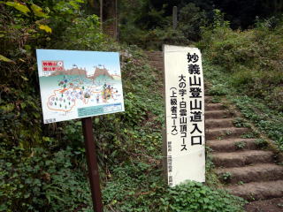 先ずは妙義神社でお参りです。以前、大の字より中間道経由で来た以来です。長い階段を上がり境内を登って行くと旧神社方面は通行止めですので右側の登山口から登ります。