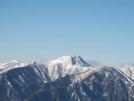 日光白根山のアップ! 雲の纏わり付いた浅間山。富士山もまだ見えますが、大分霞んでしまいました。