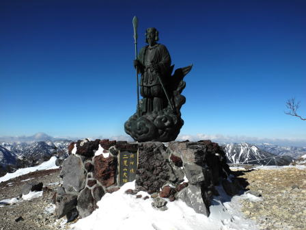 再び快晴でご機嫌の「二荒大神の神像」を拝みます。1時間以上ゆっくりしましたので、下界へ向け沢山標高を下げて行きます。