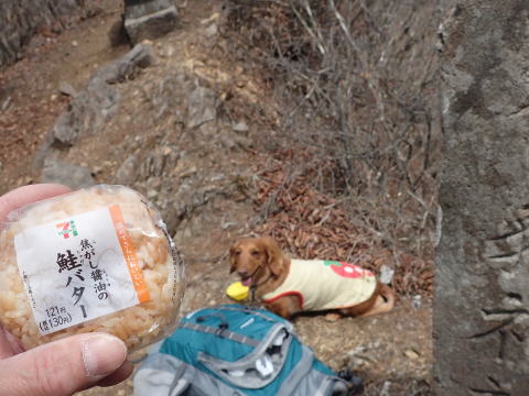 日暮山の頂は狭い山頂ですが、貸切なので窮屈には感じません! nanacoはぐん百47座達成!(ワンコの目標は50座!)