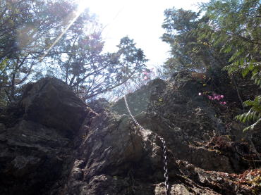 鎖を使わなくても登れる岩場は、クライミングもどきで岩を掴みながら登って行きます