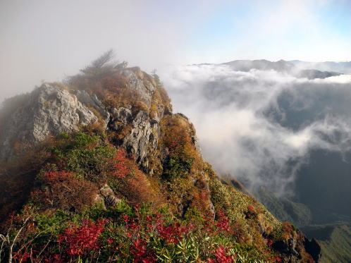 | 谷川岳の標高は2,000mにも満たないが、急峻な岩壁と複雑な地形に加えて、中央分水嶺のために天候の変化も激しい。気象の厳しさから標高1,500m付近が森林限界となるために、比較的低い標高でも高山植物が観察できます。ロープウェイを使って、一般コースの谷川岳(トマの耳・オキの耳)までの天神尾根コースは、首都圏から近いこともあって多くの登山者が訪れています。健脚向けの谷川岳馬蹄形縦走コースは、関東周辺方々の憧れの健脚コースで、日本百名山の谷川岳を含め、群馬百名山の名峰6峰が含まれる贅沢な9峰充実縦走コースです。 |